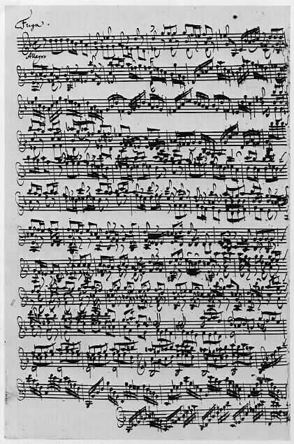 Most of Bach's original scores are in the upright format (portrait, in computer-printout parlance). Some exceptions are the manuscripts of his Brandenburg Concerti and much of his keyboard music, written on horizontal format paper (i.e., landscape). Indeed, the printed editions of his organ works appear in this oblong configuration even today. Mozart, too, consistently used oblong staff paper, for both his orchestral compositions and his piano music. It's worth noting that two of the piano sonatas he composed in Paris were notated on staff paper in the vertical configuration, commonly used in France at that time. Schubert also seems to have favored the oblong format paper, on which he scored his "Unfinished" symphony in b-minor.