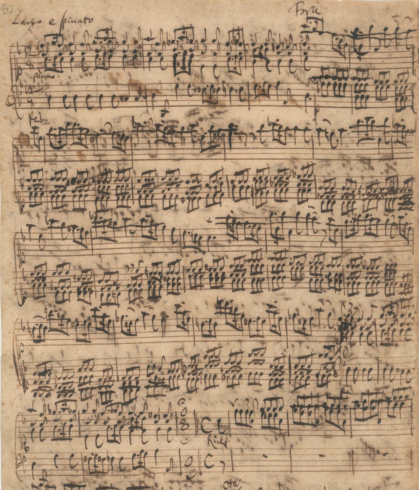 The image below is the first page of the sheet music, and here you can download the full sheet music for Vivaldi's L'estro armonico Concerto No.11 in Dm, 2nd movement for Organ by Bach in PDF format.